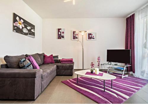 The apartment with a balcony and mountain views features 1 bedroom, a living room, a flat-screen TV, an equipped kitchen with a dishwasher and an oven, and 1 bathroom with a walk-in shower. Towels and bed linen are featured in the apartment. This apartment is allergy-free and non-smoking.
