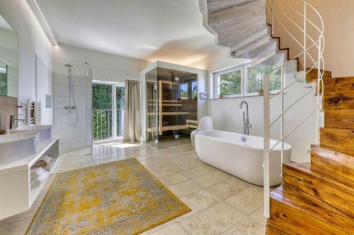 The spacious holiday home has 3 bedrooms, a flat-screen TV, a fully equipped kitchenette with a dishwasher and an oven, a washing machine, and 2 bathrooms with a bath. Towels and bed linen are offered in the holiday home. The property has an outdoor dining area.