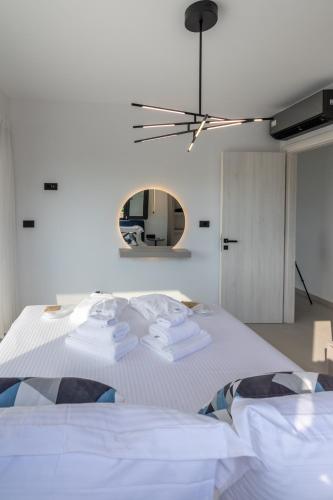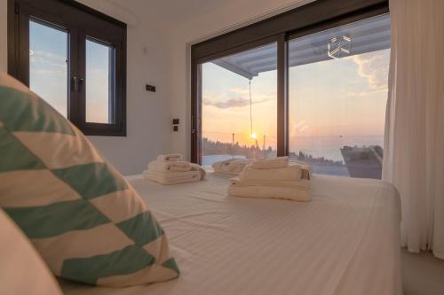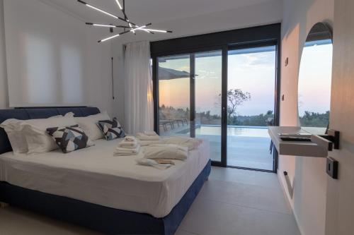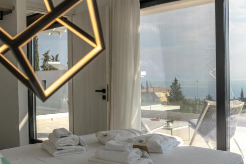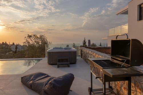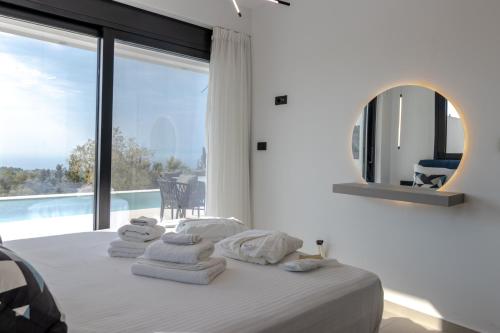 The villa provides guests with a terrace, sea views, a seating area, satellite flat-screen TV, a fully equipped kitchen with a dishwasher and an oven, and a private bathroom with walk-in shower and bathrobes. A fridge, a stovetop and kitchenware are also offered, as well as a coffee machine and a kettle. Additional in-room amenities include wine or champagne, fruits and chocolates or cookies.