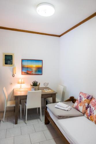 A kitchenette with cooking hobs, fridge and dining area is included in all the bright apartments at the Vera Lilli. Each comes with a seating area and TV, as well as a shower cabin.