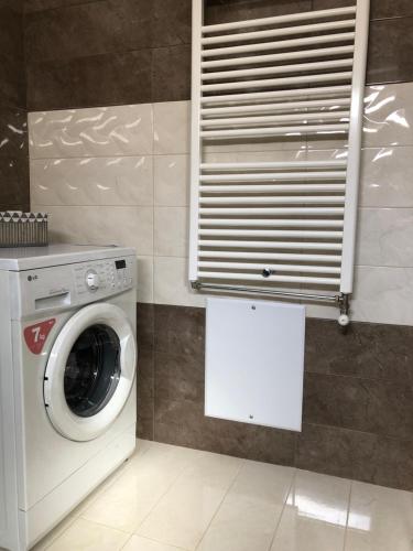 The air-conditioned apartment is composed of 1 separate bedroom, a living room, a fully equipped kitchen, and 1 bathroom.