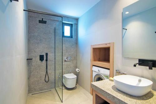 The villa provides guests with a balcony, sea views, a seating area, satellite flat-screen TV, a fully equipped kitchen with a dishwasher and an oven, and a private bathroom with shower and a hair dryer. A microwave, a toaster and fridge are also featured, as well as a coffee machine and a kettle. At the villa complex, all units have bed linen and towels.