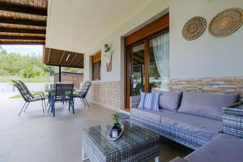 The villa with a terrace and mountain views has 3 bedrooms, a living room, a flat-screen TV, an equipped kitchen with a dishwasher and an oven, and 2 bathrooms with a walk-in shower. Towels and bed linen are offered in the villa. The property has an outdoor dining area.