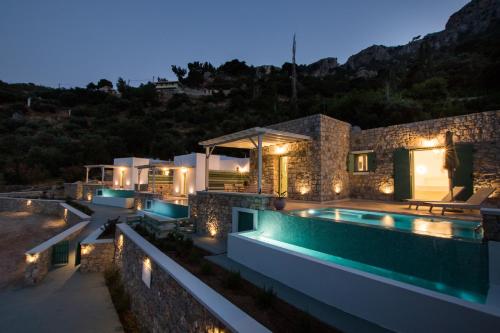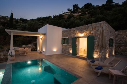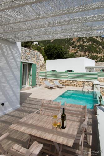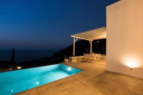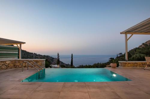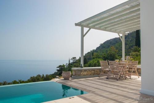 The villa with a terrace and sea views has 1 bedroom, a living room, a flat-screen TV, an equipped kitchen with an oven and a fridge, and 1 bathroom with a shower. A private entrance leads guests into the villa, where they can enjoy some wine or champagne and fruits. The property offers pool views.