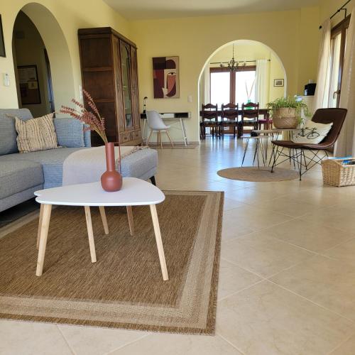 Featuring a DVD player, the spacious villa has a fully equipped kitchen with a dishwasher, an oven and a microwave, a living room with a seating area and a dining area, 4 bedrooms, and 2 bathrooms with a walk-in shower and a bath. The unit is air conditioned and includes a terrace with an outdoor dining area as well as a flat-screen TV with satellite channels. Additional in-room amenities include wine or champagne.