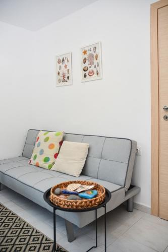 The apartment provides guests with a terrace, sea views, a seating area, a flat-screen TV, a fully equipped kitchenette with a toaster and a fridge, and a private bathroom with shower and a hair dryer. There is also a stovetop, kitchenware and a coffee machine. At the apartment complex, the units have bed linen and towels.