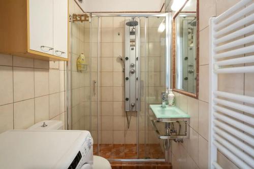 The apartment offers bed linen, towels and laundry service.