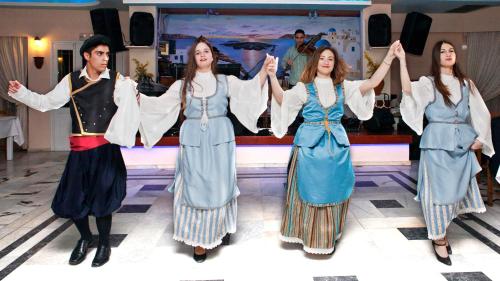 The family’s tavern serves traditional Greek and local dishes for lunch and dinner. Greek nights with live music and dancing are hosted twice weekly.