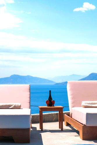 The villa with a terrace and sea views has 1 bedroom, a living room, a flat-screen TV, an equipped kitchenette with a fridge and a stovetop, and 1 bathroom with a shower. Towels and bed linen are available in the villa. There is also a seating area and a fireplace.