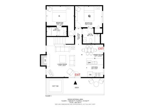 The spacious holiday home has 2 bedrooms, a flat-screen TV with streaming services, a fully equipped kitchen with a dishwasher and a microwave, a washing machine, and 2 bathrooms with a hot tub. Guests can take in the ambience of the surroundings from an outdoor dining area or keep themselves warm by the fireplace on colder days.