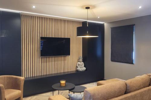 This holiday home features 2 bedrooms, a kitchen with a dishwasher and an oven, a flat-screen TV, a seating area and 1 bathroom fitted with a hot tub. For added privacy, the accommodation features a private entrance.