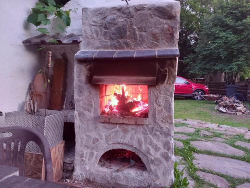 Guests can also warm themselves near outdoor fireplace after a day of skiing.