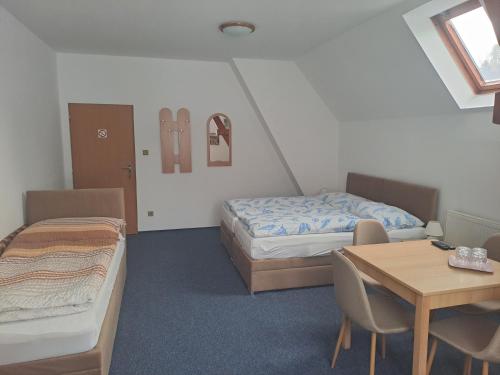 A Kachlicka panzió vendégei pihenhetnek a bárban és a kandallóval rendelkező étteremben. A helyszínen díjmentes a privát parkolás.