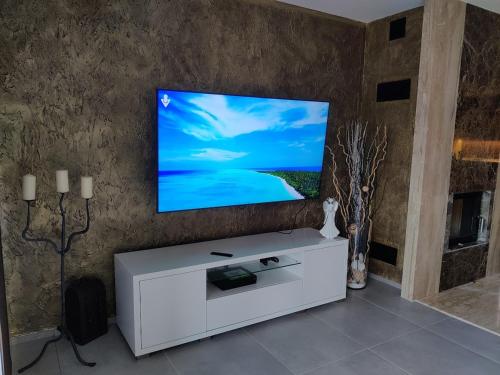 Featuring a Xbox 360, the holiday home has a fully equipped kitchen with a dishwasher, an oven and a microwave, a living room with a seating area and a dining area, 3 bedrooms, and 1 bathroom with a hot tub and a bidet. The unit is air conditioned and includes a terrace with outdoor furniture as well as a flat-screen TV with streaming services. The accommodation offers a fireplace.