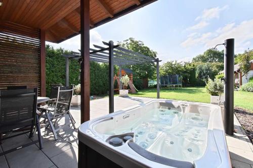 Boasting garden views, Bungalov Valentýna features accommodation with free bikes, a garden and barbecue facilities, around 11 km from Chateau Valtice. A hot tub is available for guests. The holiday home also provides free WiFi, free private parking and facilities for disabled guests.