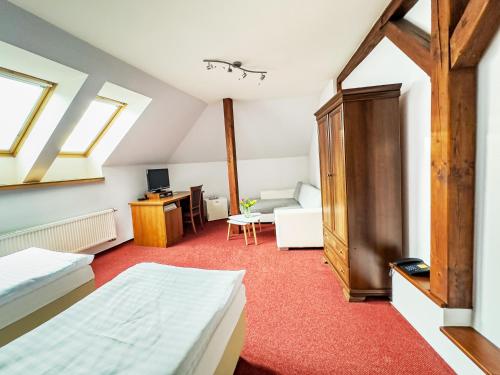Located 41 km from Olomouc Castle, Hotel Růžek offers 3-star accommodation in Hranice and features a terrace, a restaurant and a bar. The property is set 42 km from Holy Trinity Column, 39 km from Main Bus Station Olomouc and 40 km from Main Train Station Olomouc. The hotel has a hot tub, room service and free WiFi throughout the property.