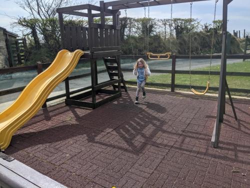 The holiday home features a children's playground and a picnic area.