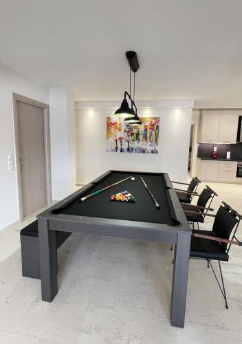 You can play billiards at the apartment. An indoor play area is also available for guests at Asterias Home.