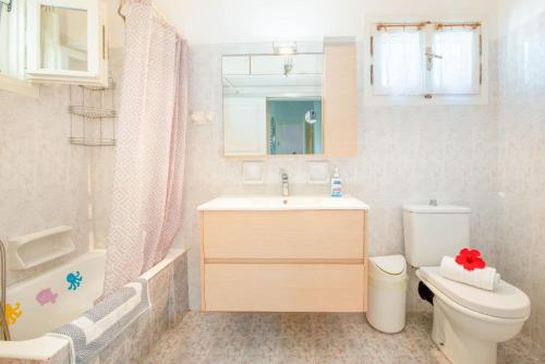 The villa with a terrace and sea views has 3 bedrooms, a living room, a TV, an equipped kitchen with a dishwasher and an oven, and 2 bathrooms with a bath. Towels and bed linen are available in the villa. The property has an outdoor dining area.
