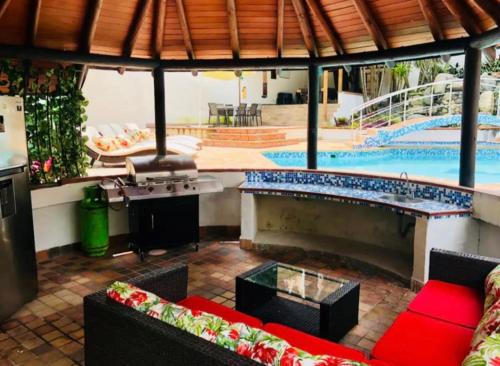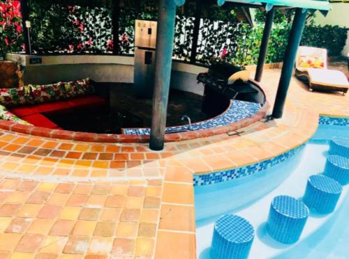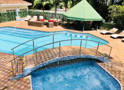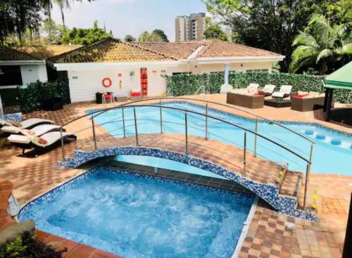 Boasting a sauna, POBLADO TROPICAL 13 BEDROOM MANSION POOL JACUZZI AC BUTLER 5 MINUTES TO LLERAS is set in Medellín. This property offers access to a patio, a pool table, free private parking and free WiFi. The villa offers an outdoor swimming pool with a pool bar, as well as a sauna and a shared kitchen.