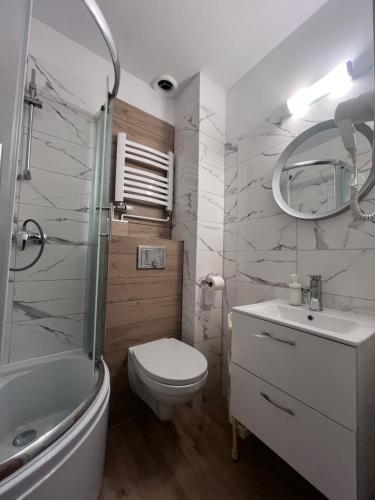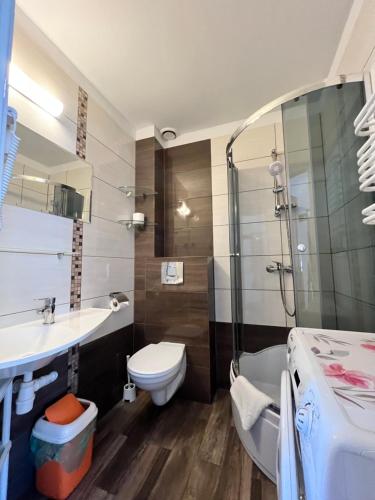 Each room at the Ośrodek Wczasowy is warmly decorated and features a flat-screen TV, a refrigerator and essential kitchenware. There is a dining room. Some rooms come with a kitchenette. Hairdryer is available.