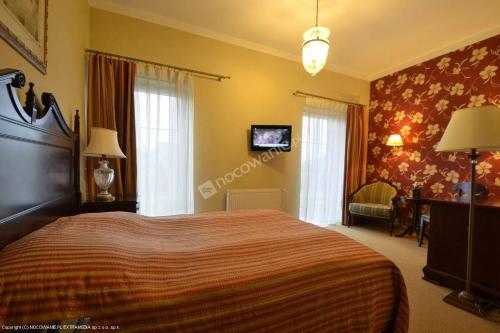 Every room in Arkadia Gościniec-klima,parking,ogród is decorated in bright colours and features a flat-screen TV and a bathroom with a shower.