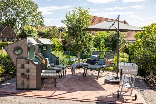 Featuring a sauna, Auszeithaus Pilsum is located in Krummhörn. A sauna is available for guests. There is a terrace and guests can make use of free WiFi, free private parking and an electric vehicle charging station.