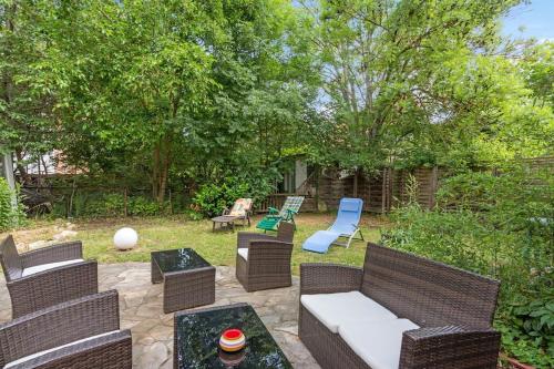 The apartment is located on the ground floor and is equipped with 1 bedroom, a flat-screen TV with streaming services and a fully equipped kitchen that provides guests with a dishwasher, an oven, a washing machine, a microwave and a toaster. Towels and bed linen are provided in the apartment. The property has an outdoor dining area.