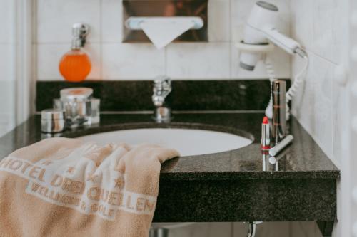 Wellness facilities at the Hotel Drei Quellen include different saunas, a gym, and an indoor/outdoor pool. Massages, beauty services, and medical treatments can be booked here.