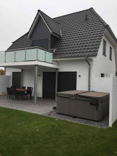 Boasting accommodation with a terrace, Haus Kranichnest is situated in Göhren-Lebbin. The property is set 1.4 km from Fleesensee, 23 km from Buergersaal Waren and 42 km from Mirow Castle. Featuring free WiFi throughout the property, the non-smoking holiday home features a sauna.