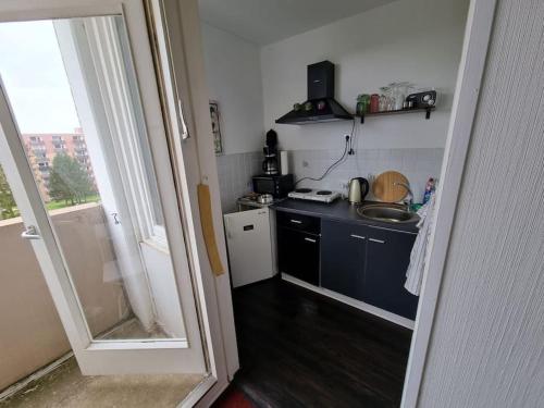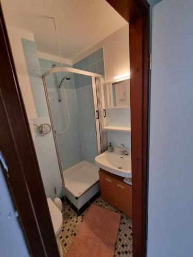 The apartment features 1 bedroom, a flat-screen TV, a fully equipped kitchen with a fridge and a stovetop, and 1 bathroom with a shower.
