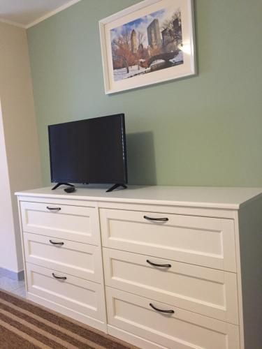 The apartment has 1 bedroom, a living room with a flat-screen TV, an equipped kitchen, and 1 bathroom with a bidet and a hair dryer.