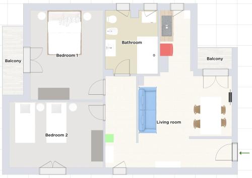 The spacious apartment with a balcony and inner courtyard views features 2 bedrooms, a living room, a TV, an equipped kitchen with an oven and a microwave, and 1 bathroom with a bidet. Towels and bed linen are featured in the apartment.