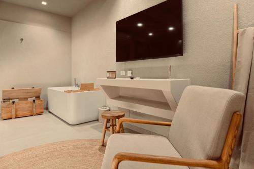 Guests can also relax in the shared lounge area.