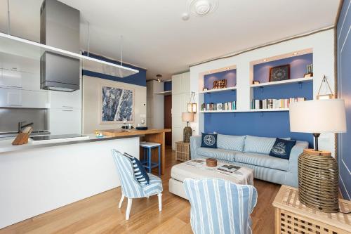 The apartment with a terrace and sea views has 1 bedroom, a living room, a flat-screen TV, an equipped kitchen with a dishwasher and an oven, and 1 bathroom with a bidet. Towels and bed linen are offered in the apartment. The property has an outdoor dining area.