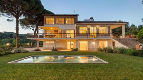 The spacious villa has 5 bedrooms, 6 bathrooms, bed linen, towels, a TV, a dining area, a fully equipped kitchen, and a terrace with pool views. Guests can enjoy a meal on an outdoor dining area while overlooking the garden views. For added privacy, the accommodation features a private entrance.