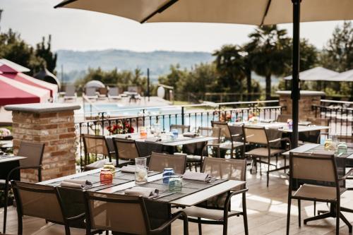 Relais Almaranto has a seasonal outdoor swimming pool, fitness centre, a garden and terrace in Calamandrana. Featuring a bar, the 4-star hotel has air-conditioned rooms with free WiFi, each with a private bathroom. Some rooms at the property have a balcony with pool view.