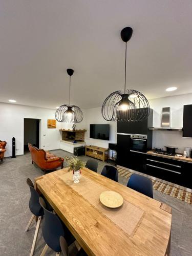 The apartment has a sun terrace and an outdoor fireplace.