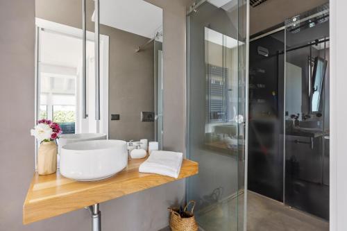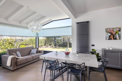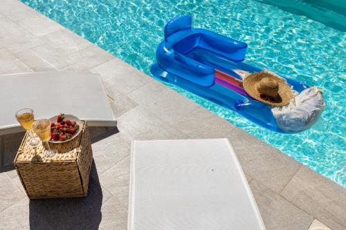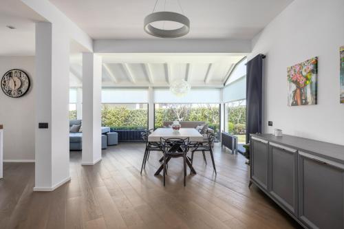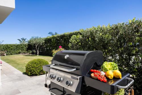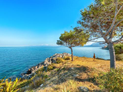 The villa with a terrace and sea views features 2 bedrooms, a living room, a flat-screen TV, an equipped kitchen with a dishwasher and an oven, and 2 bathrooms with a bidet. The air-conditioned unit at the property features a bath and a dressing room. The property has an outdoor dining area.