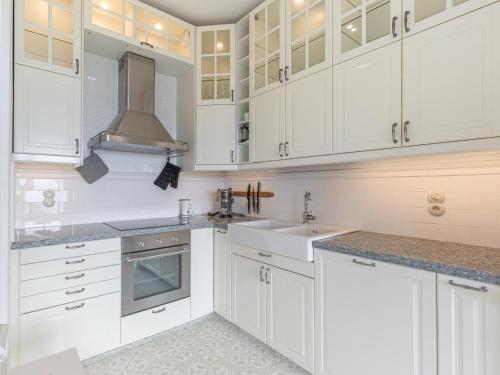 The apartment provides guests with a terrace, sea views, a seating area, a flat-screen TV, a fully equipped kitchen with a dishwasher and an oven, and a private bathroom with bidet and a hair dryer. A toaster, a fridge and stovetop are also provided, as well as a coffee machine and a kettle. At the apartment complex, all units are equipped with bed linen and towels.
