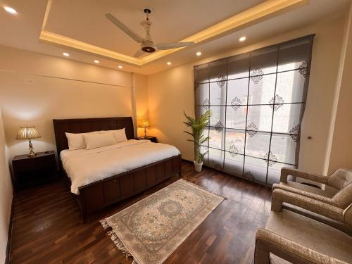 Elysium Serviced Apartments II is set in the Blue Area district of Islamabad, 3.6 km from Shah Faisal Mosque, 12 km from Lake View Park and 19 km from Ayūb National Park. There is a private entrance at the apartment for the convenience of those who stay. The apartment offers rooms with air conditioning, free private parking and free WiFi.