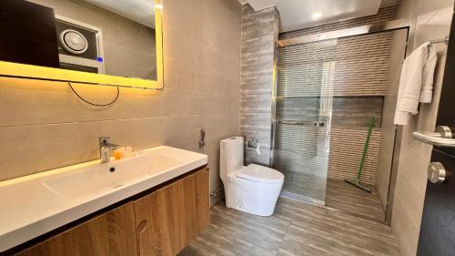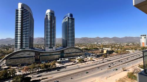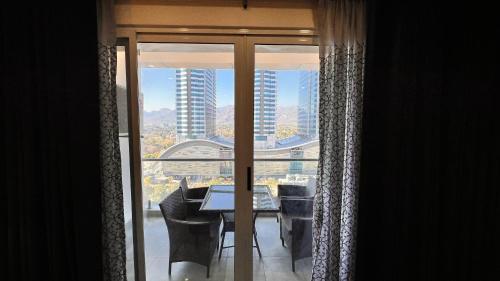 The apartment provides guests with a balcony, city views, a seating area, a flat-screen TV, a fully equipped kitchen with a microwave and a fridge, and a private bathroom with walk-in shower and slippers. Units come with a kettle, while some rooms also feature a terrace and others also feature mountain views. At the apartment complex, every unit is fitted with bed linen and towels.