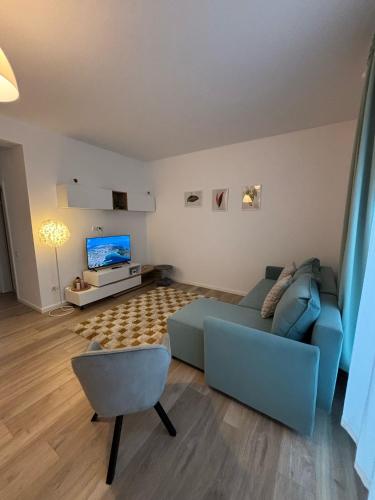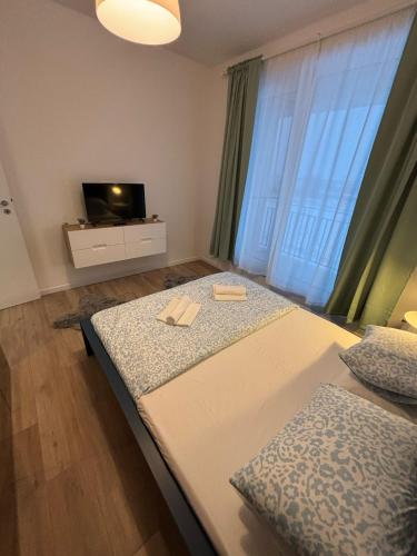 The apartment with a balcony and city views has 1 bedroom, a living room, a flat-screen TV, an equipped kitchen with a dishwasher and an oven, and 1 bathroom with a shower.