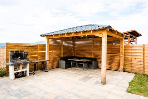 The villa features a barbecue and a garden, which can be enjoyed by guests if the weather permits.