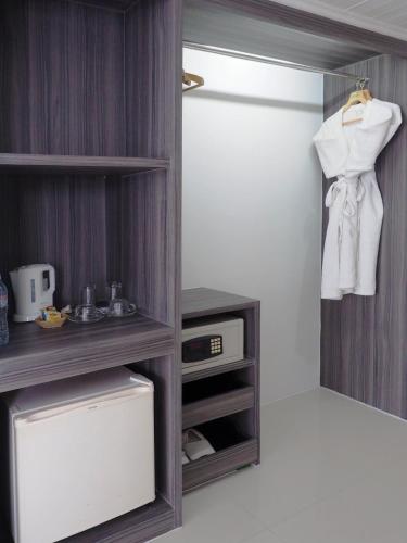 Rooms provide tea and coffee-making facilities and free bottled water. A safety deposit box, bathrobe are included.