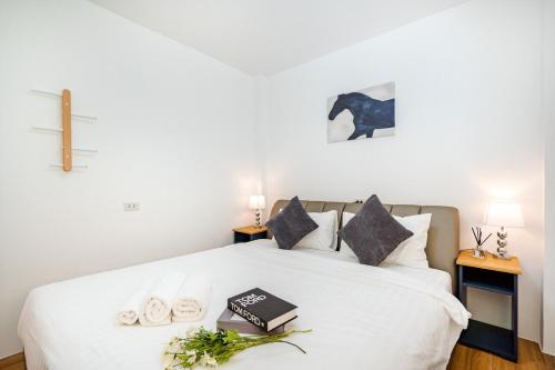 The villa is composed of 1 bedroom, a fully equipped kitchen, and 3 bathrooms. A flat-screen TV is provided.