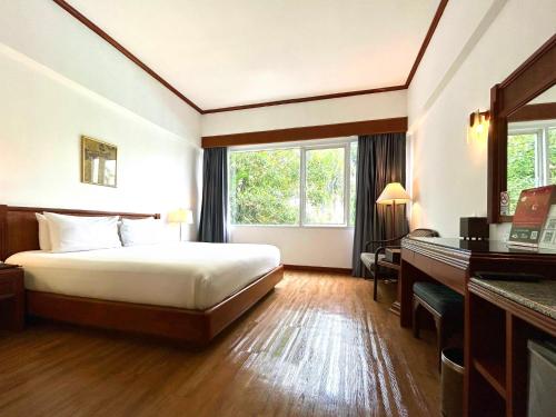 The hotel is just a 10-minute drive from Mae Sot Airport and 500 km from Bangkok. The hotel is accessible by a scheduled coach service. Recreation facilities include a swimming pool, fitness centre, massage service, 2 tennis courts, and a golf driving net. There is a restaurant serving traditional Thai cuisine in an idyllic spot directly on the banks of a lake, as well as another restaurant that also serves international food, and a lobby bar with live karaoke music.