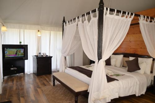 At the hotel, each room is equipped with a desk and a flat-screen TV. At Kingfisher Resort, the rooms are equipped with air conditioning and a private bathroom.