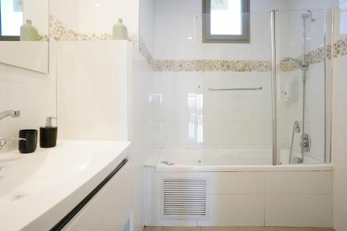 The spacious apartment with a terrace and sea views has 3 bedrooms, a living room, a flat-screen TV, an equipped kitchen with an oven and a microwave, and 2 bathrooms with a bath. The air-conditioned unit at the property features a shower and a dressing room. The apartment offers bed linen, towels and laundry service.