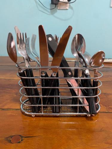 Questo chalet comprende 2 camere da letto, 1 bagno, lenzuola, asciugamani, una TV a schermo piatto con canali satellitari, una zona pranzo, una cucina con utensili e un patio con vista sulla montagna. Per vostra comodità, la struttura può fornire asciugamani e biancheria da letto a pagamento.
